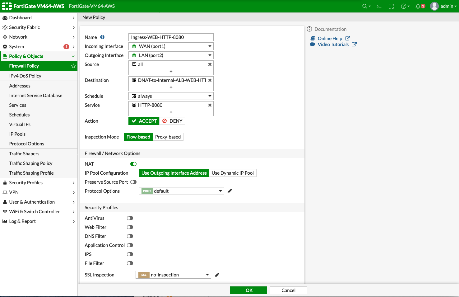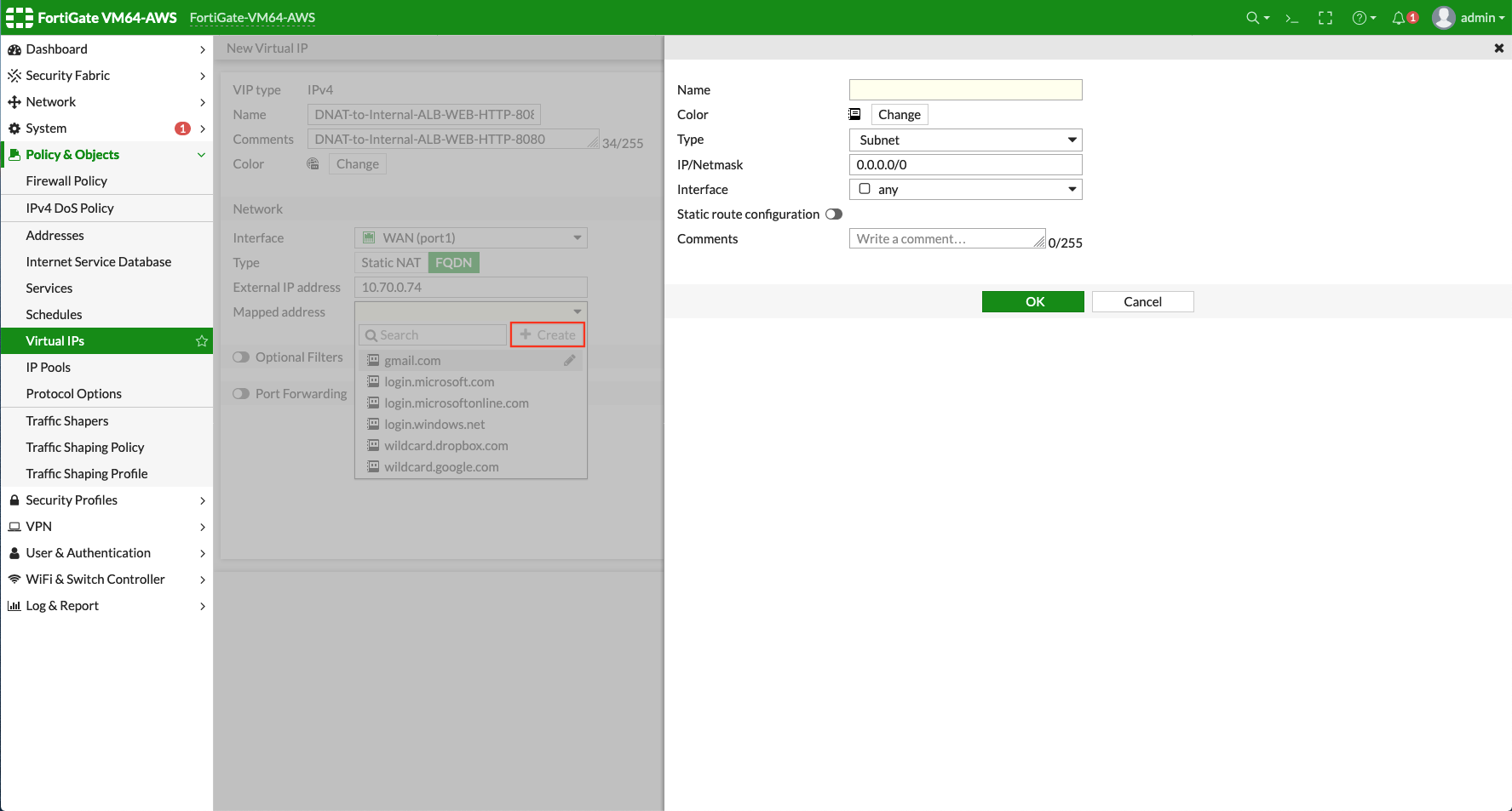 Select the Virtual IPs 'DNAT-to-Internal-ALB-WEB-HTTP-8080' which is created in the previous step
